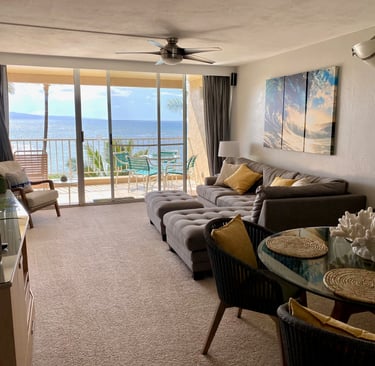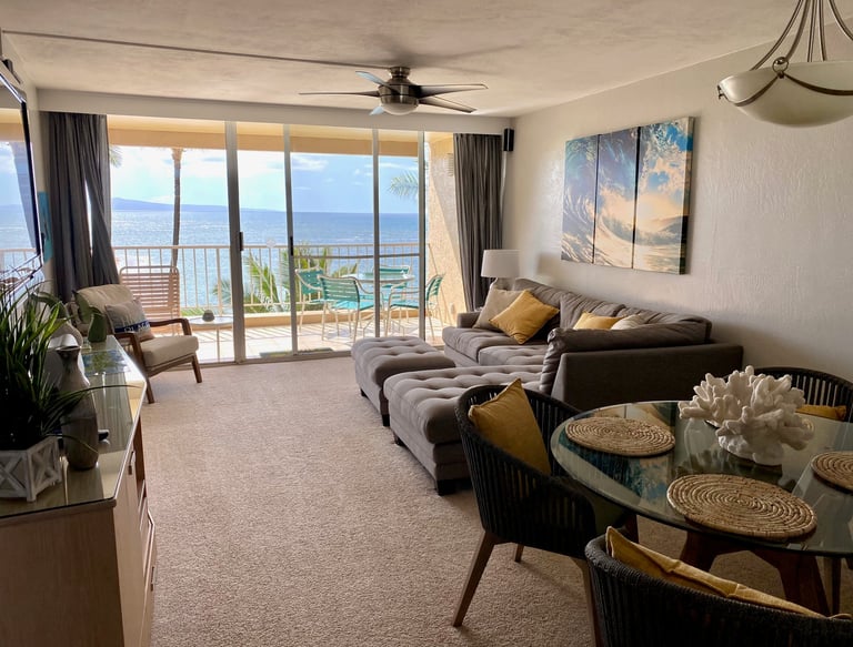 Experience stunning oceanfront views and whale watching right from your lanai.